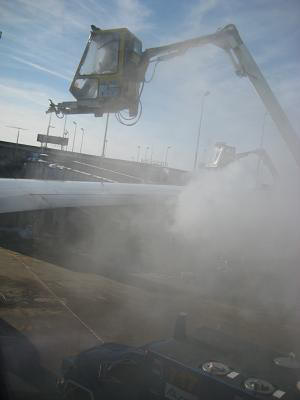 To take precaution, I decided to get up earlier than I originally planned so I got up from the bed at 3:45am, giving myself some extra time. I stretched my body and took a shower. The outside temp was at 22F, according to the internet. It also showed that Chicago is at 0F. Oh my... Because of what I saw, I wanted to check the outside condition so I carried one of the bags with myself to save a trip. I found out that the car failed to pull out from the lot was using salt rocks to melt the ice, well, it won't help. The guy should have used newspaper, or old lugs instead. Otherwise everything looks okay to me, only hope that the road to the airport is also okay. I tried to open the passenger side door but the lock was frozen, so I had to bring all the stuffs from driver's side. One good thing was that the rain did not coat ice over the car so it was ready to go. I went back to room again to get another bag. I left my apartment at 4:50am, after I made sure that I unplugged my PC and related appliances, as well as setting thermostat at the lowest.