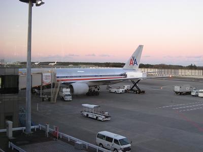 Since I still have the tickets issued by JAL, I need to get AA instead, so I went up to the counter to get them replaced. I have been informed that the boarding should start from 6:15pm. I was later called again around 5:45pm, being told that my seat is upgraded to a business class seat. Oh, man... This is a pretty nice treat! (I always wanted to be in one.) I guess it's time for boarding. I picked up a phone to call home. My mom answered and we talked for a while, trying to encourage her (and this, became the last time I talked her). At the same time, I could hear coughing there, sneezing there... Oh man, I think this one is going to be a nasty one. The actual boarding started from 6:20pm, and thanks to business class seating, I was sitting in the plane by 6:30pm. The seat is comfortable and leg room is great.