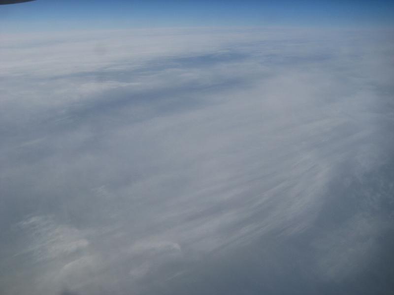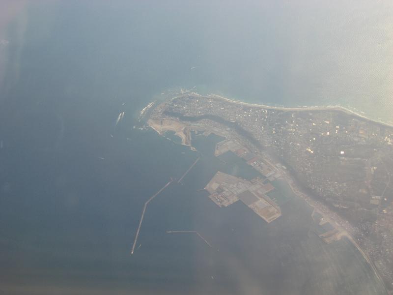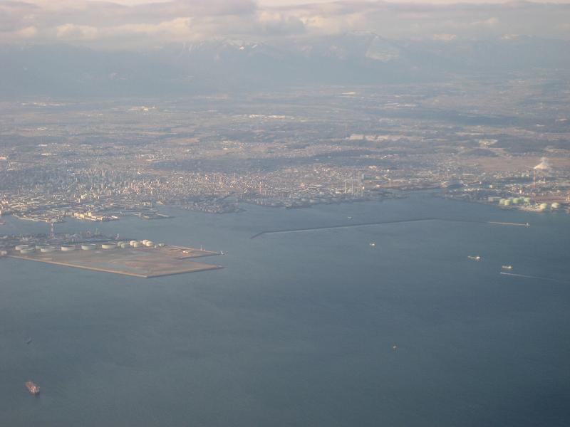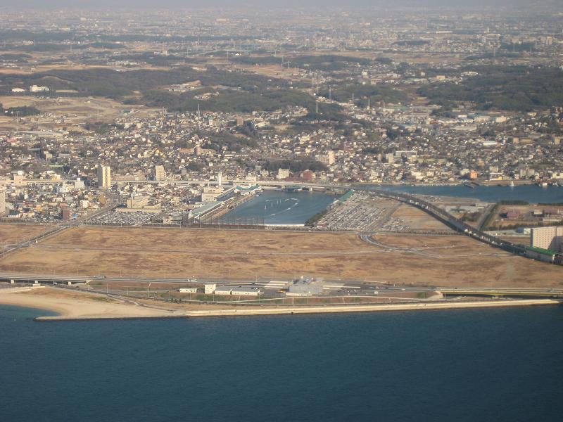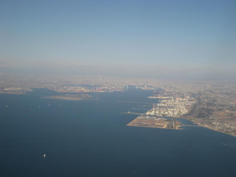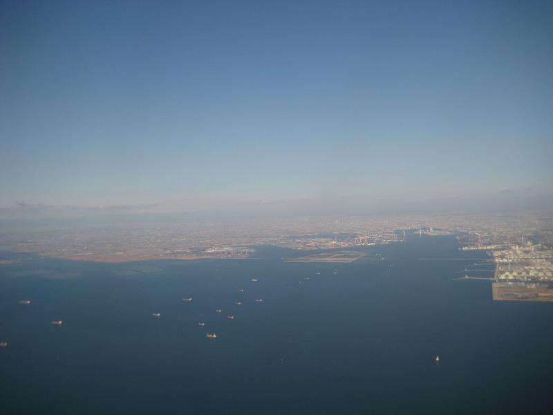 The plane departed on time, and began taxing down to the south end. The plane took off at 2:20pm to the north, and made left turn to circle around the airport before heading to Narita. As the place taking off from the ground, I had a really strong emotion that I should stay home because I will miss my mom so bad, and still have a lot to talk about. The feeling was, actually stronger than when I left home for a study abroad back in 1996... Since I am sitting on the right hand side of the plane, I was able to see the port of Nagoya, and as well as the one at Yokkaichi. Once the plane started to heading to east, The window only shows the pacific ocean so I did not get to see much. The only thing was we crossed with an ANA plane at Omaezaki, as well as seeing a small pressure system on the way. I was taking naps after that, so I woke up when the plane was getting ready for landing.