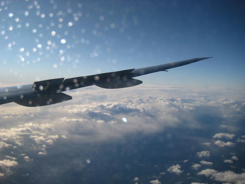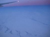 I took easy while flying back to the U.S. Passed international date line around midnight in JST, then reached to the U.S. continent at north of Crescent City, CA at 3:10am, but since the weather was overcast, I could not see the shore. The air was getting turbulent. I fell back to sleep but woke up at 5:00am, because I could hear noise of breakfast being served. I had cereal and milk the plane now flying over Colorado Rockies at north of Santa Fe, at FL410 at -59C. The plane had to fly very high to avoid bumpy air. Flying near by Amarillo, TX at 5:30am, At 5:35am. the plane started to descend to FL360 as well as collecting the headsets provided. The captain of the plane announced that the condition at DFW is clear but expecting wind from north at 20mph with gust of 25mph. I guess I could be a bit of wild ride.