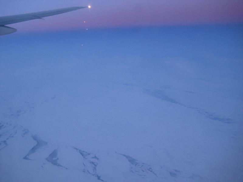 The plane kept going up north, fly passing nearby Duluth, MN around 12:50pm. The air got a bit shaky. FL320, with ground speed of 600mph at -57C. The plane kept going up north more than usual. Most of the time, the plane fly by Minneapolis, MN but not this time. It flew north of Winnipeg, then lunch (beef and rice) was served around 1:30pm. The plane is flying at FL340, with ground speed of 520mph, at -55C. By 4:00pm, it arrived to Great Bear Lake at FL360, 528mph, -56C. The sky is getting dark also. The plane flew along the north edge on Alaska, and I have seen lights from a small town under dark (I believe it is Prudhoe, AK) at 5:40pm located north of Fairbanks and cloud peak. 7 more hours to Tokyo.