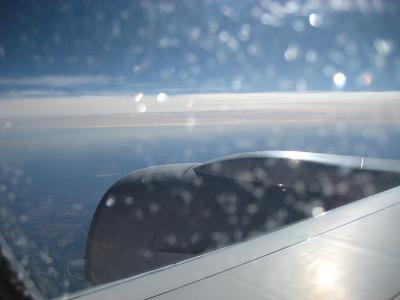 The boarding for the flight started on time at 10:20am at gate K-19. Since I have Platinum membership for American Airlines, I can start boarding right after they take care of first and business class passengers. I took my seat, relaxing and watched activities outside such as crews putting in palletized cargos to the plane. I have seen them pushing the containers to the loader with belt conveyer cars... What in the heck?! Before departure, the plane need to get de-iced, so we had to wait for a while, now we are well passed scheduled departure time. The captain was saying he is trying to find out how long it will take more... He also mentioned that the flight is expected to be bumpy so we will take the best path possible. Finally the plane get pushed back from the gate at 11:45am. The plane proceeded to runway 28, took off at 12:00pm. After making a couple of right turns, to change heading to north.