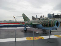 MiG-15 MiG-17 MiG-21 Concord displayed right next to the aircraft carrier