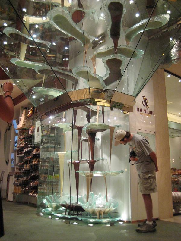 Arriving at underground bus stops for the building. The floor was beautifully decorated. We took a tour inside of the casino, and get to see the flowers made with glasses, a chocolate fountain and a scaled model of city center which is currently under construction and scheduled to be finishing up within this year.