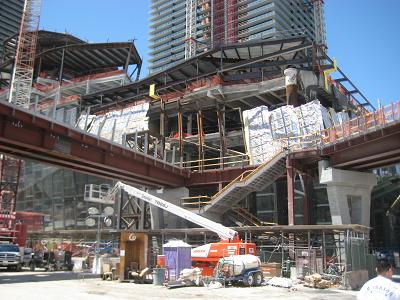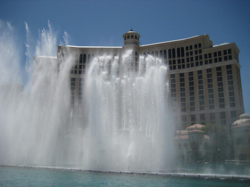 Deuce City Center under construction (to be completed by before 2010) As I was walking passed the Bellagio, I was guessing that maybe there will be a 2:00pm show. They were preparing it but they announced that the show was cancelled due to maintenance, so I started to walk away but seen they were doing the show. Because the wind was pretty gusty, they did not shoot the water very high, but it was fun. I hope to see it again in the night. I was quite thirsty so I bought a drink, which I felt very expensive, but kinda understand how important the water in the desert.