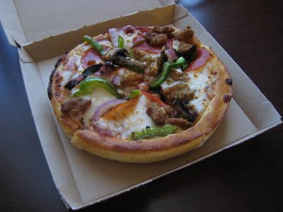 Walking toward the Caesar's palace, then finally stopped by Harrah's and played the penny slot machines for a while. Played for a while then decided to come back before losing all the money. So I was back in the hotel by 3:30pm. I relaxed and typed up a part of journal. Went downstairs to Pizza Hut inside of the hotel. I grabbed a supreme and went back to my room. I could eat out but the tour starts from 5:30pm until 11:00pm.