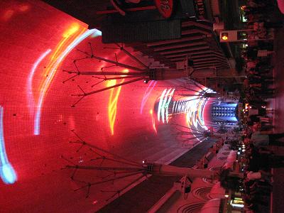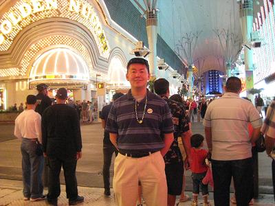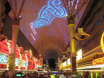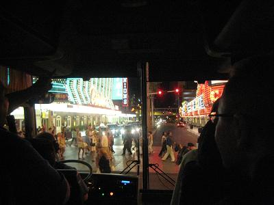 Going down to the south to check out the famous Las Vegas sign (for the second time today since I have been there during the day). So many people waiting to get the picture and some are totally drunk, I have seen a couple of people dropping their digital cameras... After the short stop, we head to downtown Las Vegas to check out the Fremont Street Experience, where the entire arcade is like a big screen TV. The bus took a freeway up to north, and arrived at the downtown area.
