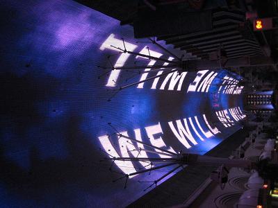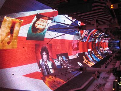 While approaching the Fremont Street, we have been warned to not to go out from the street since the surrounding is industrial area and not safe. The bus parked nearby on Casino Center Rd. We walked out from the bus and enjoyed the street view. Famous casinos like 4 Queens and Golden Nugget are located here. I guess downtown part is packed and easy to stop by casinos one after another. We waited until 10:00pm, when the show starts. Once when they turned off the lights, police officers on bikes stopped the traffic and here we go. When I checked the They were playing Queen's songs. The show was pretty nice, with the sound, and the visual effect.