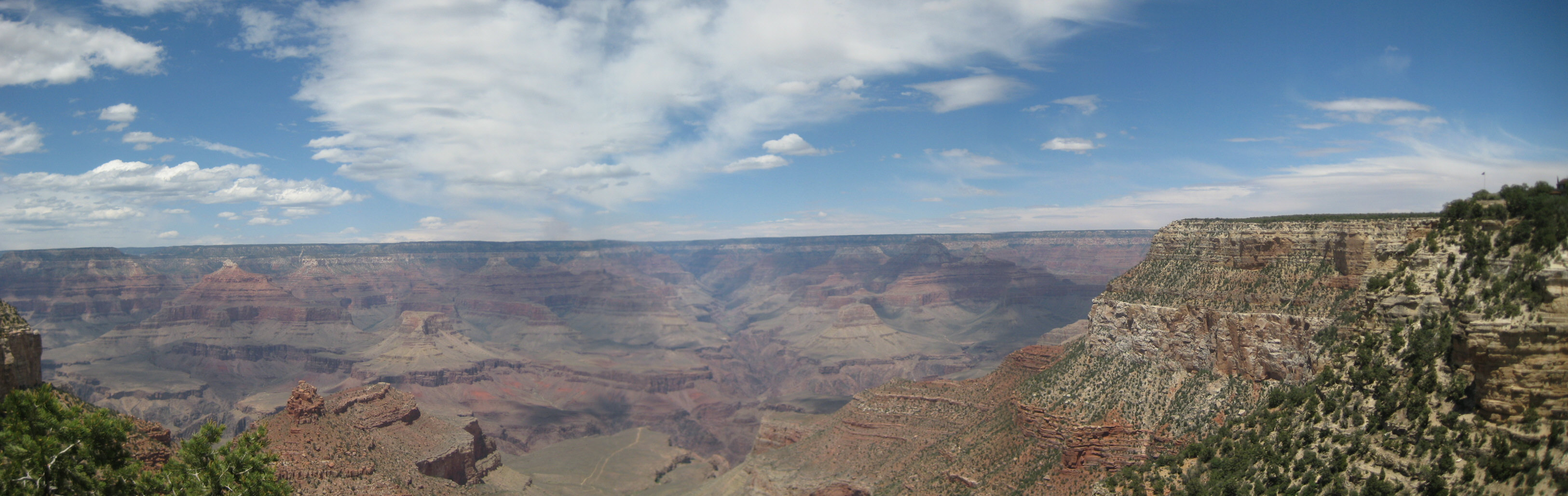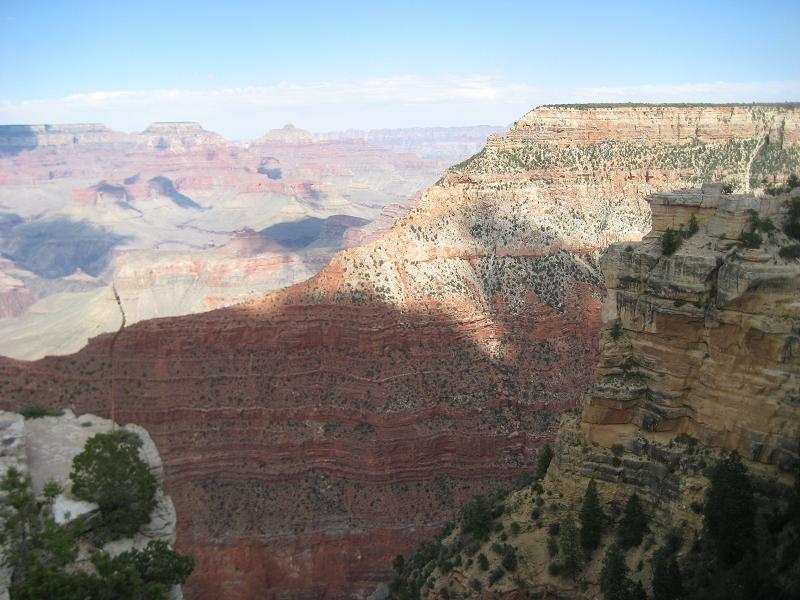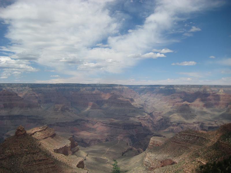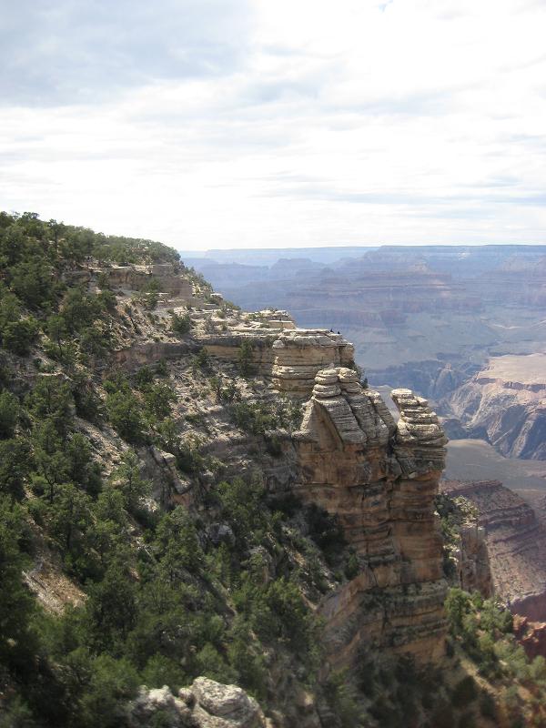 Walking through the lodge and get to see the canyon from the first time. The view of red stones with several thousand feet of depth, the rims extending far, far away, it was an awesome view. Just standing by the rim make me feel how small a human is. I am glad today is not rainy or cloudy. The stop at this location was between 1:40pm and 2:20pm. The bus driver warned that she WILL leave the place even if anyone missed the time. So I must be back here. (She also told me that the bus will make a stop to pick up someone on the way back, if she has to...)