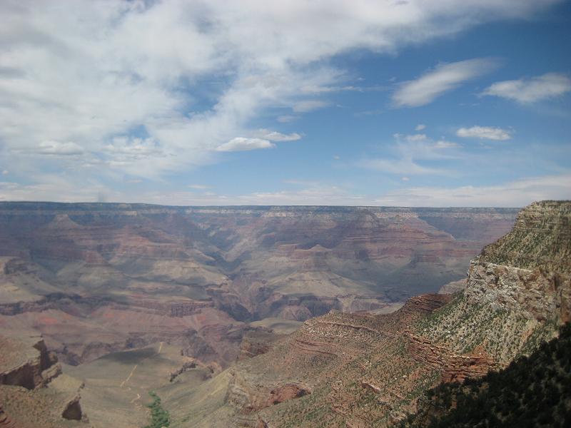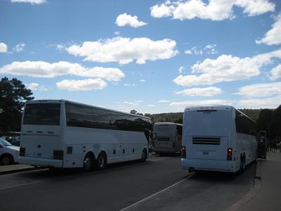 The bus continued going to east, switching to I-40 at 9:55am, stopped for groceries at a gas station. Also made another stop at McDonald's for 10 minutes and departed at 10:10am. The bus kept going. Arriving in a town called Williams, where you can take a train up to the canyon, at 11:50am, took an exit at 165 to 64. From here on, the bus will head to north to the park. Passing the Grand Canyon airport, where I see a couple of old planes like a Constellation, and many helipads for the tour. Arriving at Quality Inn at 12:40pm. Too bad that I have to pay for water and other drinks. Finished my lunch in 20 minutes then waited outside which was quite breezy and colder than at Las Vegas, due to the altitude.