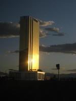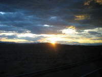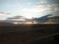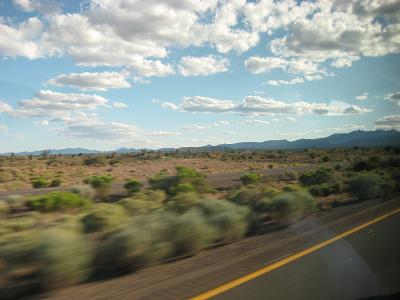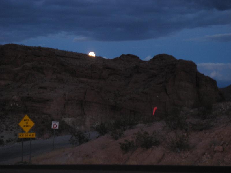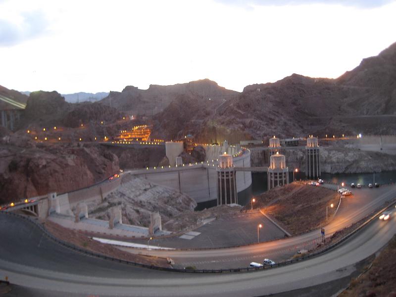 After counting that all the people are in the bus, we departed to Las Vegas around 3:15pm. We got to a gas station near by Bed Rock city sign for snack and souvenirs at 3:50pm for 20 minutes, then kept going south, getting on I-40W at 4:40pm. We made stops at the same places on the way; at McDonald's between 6:15pm for 15 minutes, and at a gas station for subs between 6:35-6:50pm. The bus kept going west, and I can see the outside getting darker. At 7:45pm passed security before crossing the Hoover Dam again. When the inspector came in, I guess he was more alerted then the guy in the morning. He was checking stuffs around but all cleared. The bus arrived to Hoover Dam at 8:00pm. The driver told us that there will be another person taking over the driver's seat since the regulation preventing her to drive anymore further. I asked the new drive if I could get off the bus at the airport (which is not on the schedule). talked to the driver to see if I can get dropped off at the airport. Final photo opportunity, I took another picture of the dam, then the bus left at 8:10pm. Passing by the bridge under construction under bright lights.