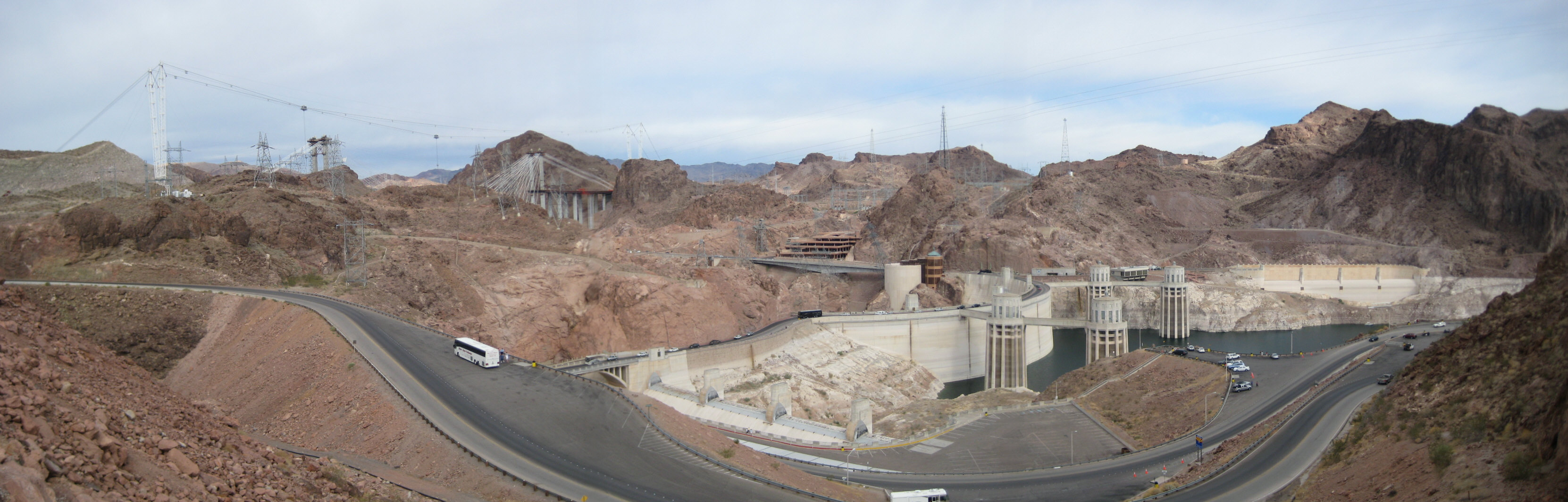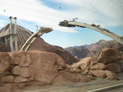 a new bridge being build Lake Mead from the dam. This used to be full but not declining