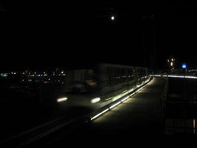 Inside of the airport Tram approaching to the terminal, the moon is in the sky