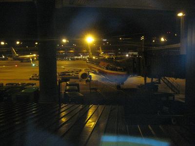 At 5:00pm, I started to shutting my PC down at work. Left the office and started to drive down the freeway to the airport. The commuting traffic was not that busy yet so I was cruising down well but some people were hurrying back to their houses. I had to be careful on those folks but that was it. I arrived at the parking around 5:30pm and waited for about ten minutes before I can get picked up. Day time shuttle service is not that frequent. Passing the security around 6:00pm, stopped by at a store to get magazine, water and a salad for my dinner. I was just relaxing and waiting for the boarding by 6:30pm. It should be alright... They have made some changes on the TVs at the lobby so suddenly they took interest away.