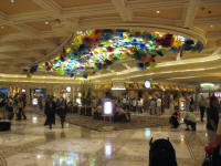 As I walked out from the hotel, I found a vending machine for the Monorail. It costs me $13 for one-day pass. I wanted to pick up a ticket to the tour tonight, so I entered the station around 10:40am and headed to the north to Sahara station. From the station, I can also see the Stratosphere's tower. I am looking forward to visit there tonight. After walking into the casino, I located a information desk and the person there exchanged my print out with a ticket. I head out from the building at 11:00am, and start heading down south.