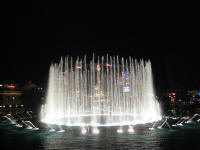 We watched the 9:00pm water show. The day time's show was pretty neat, but in the night time, it was much cooler because the shiny water shoots up in the air looked so pretty. Going back to the bus, and it left around 9:10pm.