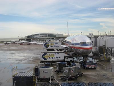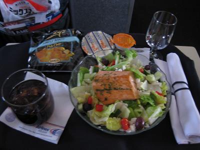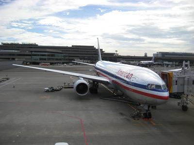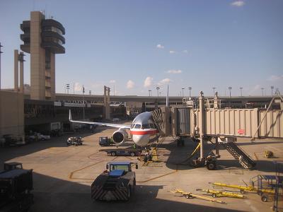 Walking up the stairs so I can go to security screening. The airport system maybe too small for this much people around. I had to wait in a long line which extend by the entrance doors. Passing the security around 11:10am, as I was walking toward the gate, I saw the plane I was on. The lobby area is simply packed and I could not find any chairs available, so I sat on the floor by a window, which was not too bad at all. I had some time before boarding so I bought a newspaper and bottled water. At the gate, there must be a cancelled flight to Dallas earlier, I saw a list of 20 people on standby. My first class upgrade was not confirmed yet but in this kind of situation, I have a good chance getting one. The boarding started from 11:45am, and just as I thought, my seat is upgraded to the first class. Sitting in a big seat, relaxing is not too bad since I was already tired a bit. I wish this is a window seat, though...