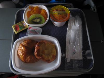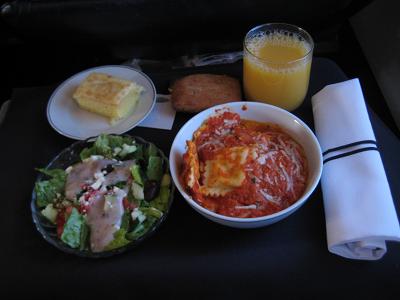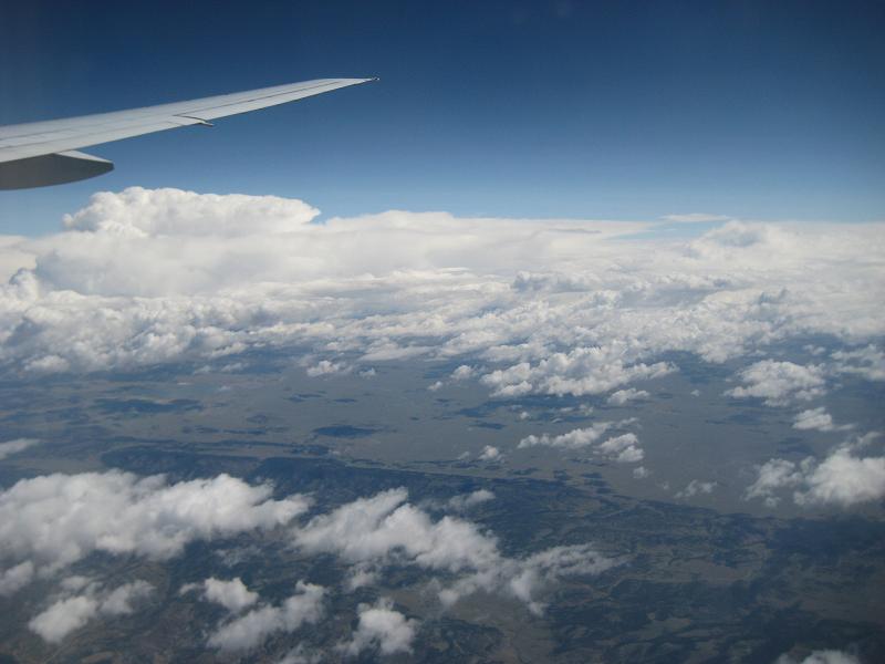 When I see some people moving around for better seats, flight attendants came and told people to go back to the original seats until the door is closed. It was professional and fine but when they went back and start talking about how Japanese passengers switch around the seats without permission and other stuffs... I was disappointed. I can hear you. At 10 minutes before the door closes, being told that 35 more people will be added; the cabin will be full. The plane went through a series of checks and get pushed back. Taxied for a while, and takeoff at 10:20am. Climbing as it breaks the cloud base, getting some sunshine again. The plane reached to FL320 at 11:00am, and kept going NW. Passing by Dalhart, TX at 11:30am then cloud started to obstruct the view again. In another 20 minutes passed, the plane passed south of Colorado Springs, then over Aspen. Around noon, lunch was served, which was kinda cool looking out the Colorado Rockies while eating. The meal was chicken and rice.