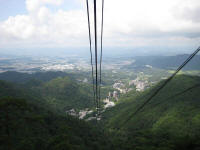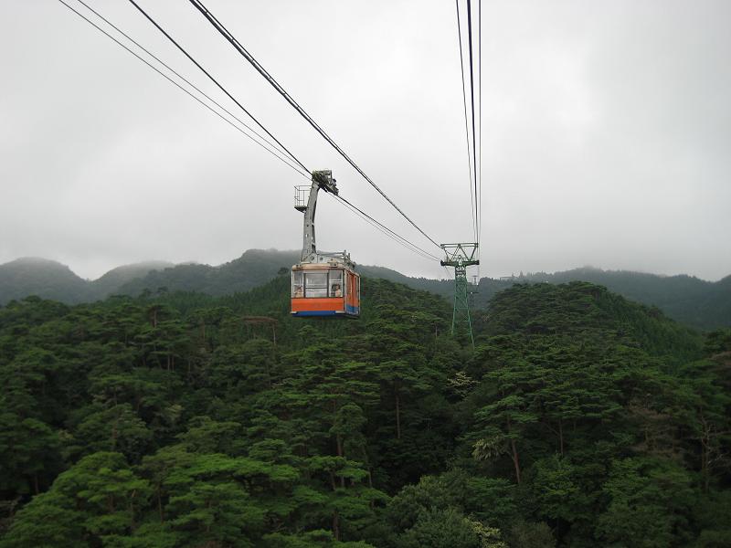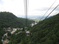 Disappointed on how much senses lost in Japanese side, we stepped out from the restaurant, heading toward the ropeway to the summit. The road to the station was a bit hilly and since we have a 3 years old coming with us, I thought maybe a bit too hard for her but she made it all way. Once we get there, I found out the ropeway does not operate at all the time. It runs three times per hour. We get on it after purchasing the ticket, and started to going up. It was kind of cool sight. As the car going up the 400m climb, I get to see the panoramic view of the location but at the same time, the sky was getting cloudy and start raining.