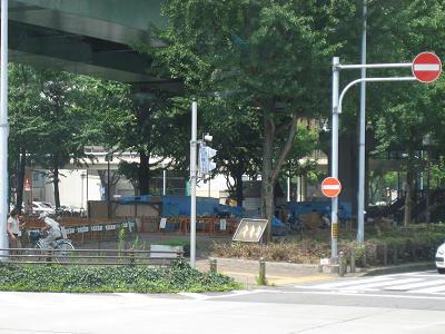 | Blue structures are living places for homeless. | Midland Square and Mode Gakuen Spiral Towers |