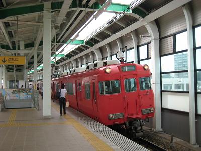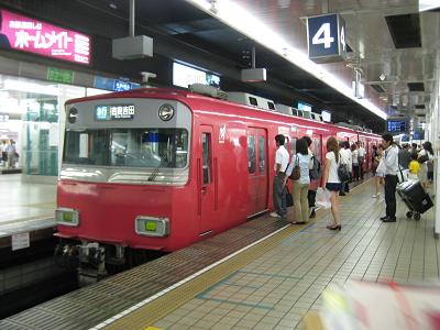 The next step is to catch a train to Nagoya, so I walked to a vending machine of Meitetsu. On the screen, train #41 was about to leave in 5 minutes, so I paid 1,200Yen for a ticket in hurry and jumped in the train. It departed on time at 5:36pm but something was wrong. It was not going fast for the first 15-20 minutes as I was expecting. However, I enjoyed watching outside under Nagoya's hot summer weather. I remember about the time coming home a year ago, also. The train was supposed to arrive at Nagoya at 6:05pm but arrived late by 5 minutes.