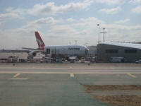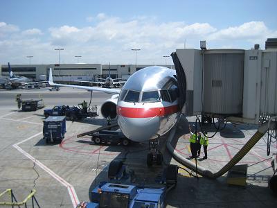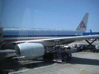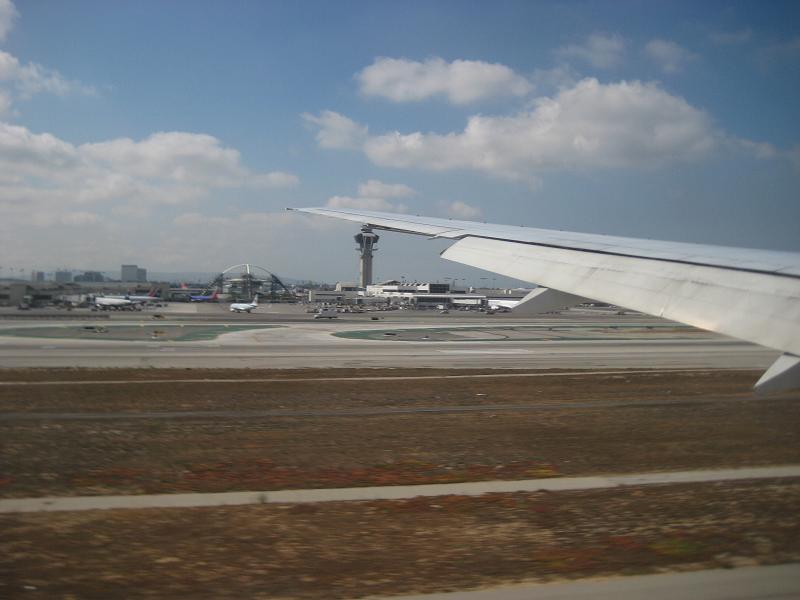 The plane took off in the air at 4:35pm, heading to east and passed south of Boso peninsula Soon after in the air it becomes turbulent and very much that way for a while the seatbelt light came off around 5:45pm I watched the movie called push, which was pretty cool. Watched another movie about X-Men's Wolverine then decided to go sleep around 7:44pm, Actually I was also sleeping in the Marita flight. Got up at 12:30am only 1.5 hours to LA. In about one hour to go, breakfast was served, the plane was flying over San Francisco at 1:30am and the captain announced that plane will be landing in half hour. Landing at 10:00am just at local time. While taxing back, I saw an Airbus A380 for the first time. It was simply huge since the jetways are only available for the lower half. Arrived at the gate at 10:10am. Walking out from the plane, proceeding to immigration. While I was waiting in the line, sniffing dogs coming and going a lot I guess drug smugglers are doing their best try while the government is doing their best also. I had to help a Japanese girl who forgot to register with TSA because I helped her, I was able to skip the line hahaha! Of course they asked me about expiration date of my passport Walking out and get my bags rechecked