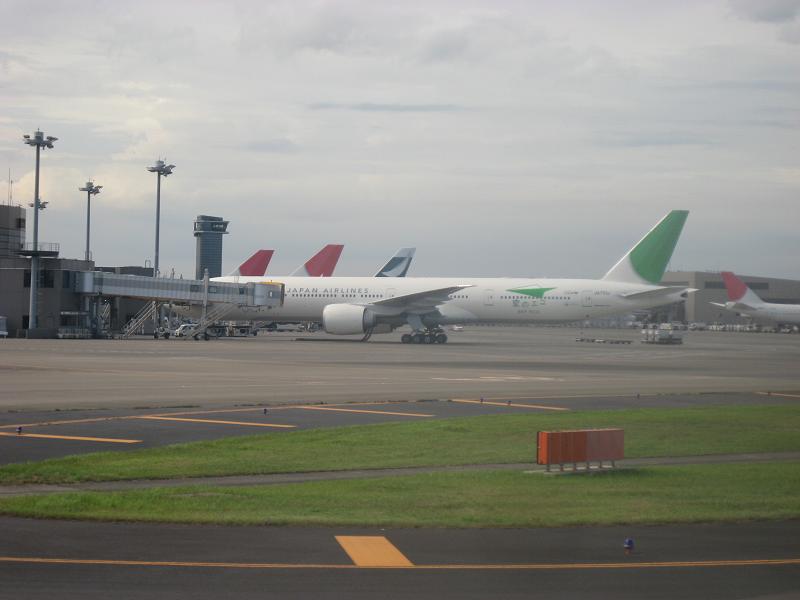 Arrived at the gate 16A by 12:30pm, I was sitting in a chair and reviewing the emails I received yesterday and typed up replies. The sunshine was so strong that I can even start to sweat if I come under the direct sun light through the window. The boarding started from 1:25pm, and I used my priority access right to get in early. The plane was very much full, and I sat next to a couple who are going to Europe. After on time departure, the plane taxied to north of the airport. The sky is under partly clear, nice summer weather. The plane took off at 1:53pm to south, I get to see Toba, before it turned to east, heading to Tokyo. The plane flew over the pacific ocean, so I was just looking the outside. I saw Nijima to south, then the sky was covered by clouds. I was not sure how much we traveled since, but landed okay at 2:50pm. Had to taxi for another 10 minutes.