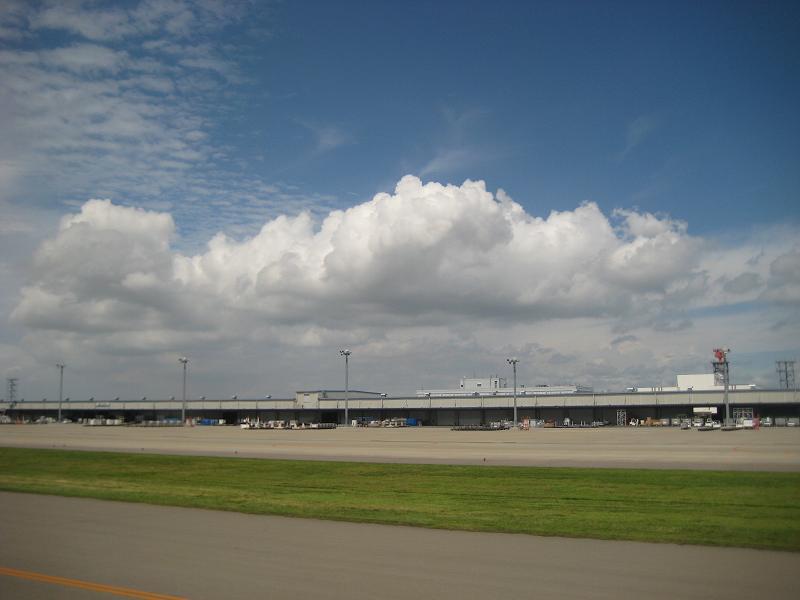 At 2:00pm, the plane flew over north of Seattle, WA, reaching south of Anchorage, AK at 4:00pm but since the plane was flying about 150 miles south of it, I could not see the land. Snack was served at 5:00pm, as it pass the international date line. I tried to take naps but not much success. Arriving to northern islands of Japan at 9:00pm. The plane kept going south over pacific ocean, and I finally change the time to JST when lunch was served at 11:30am. I had a pizza. Flying east of Iwaki city at 12:30pm, and soon the descending started. By 12:50pm, the plane reached the cloud level and kept going down. Flaps down at 12:55pm, and landed at 1:00pm. The shock of touching down was pretty hard, and the plane was skidded to side a bit before getting stabilized. Either due to crosswind or just due a bad skilled pilot. Took a while before coming to stop, left the runway with 2,000 feet remain and stated to taxi back to the terminal. I remembered that S shaped taxiway will be changed to straight after 30 years negotiations with landowner is finally settled. The plane had to taxi a bit more but arrived at the gate at 1:10pm. It was a long flight.