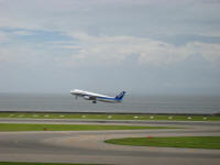 Once I got off, I walked toward the connecting counter to get the information of gate number of the next flight. There was a board with my name is on it so I had to ask the attendant nearby if there is anything wrong. It was simply a note to make sure that I will be flying. I get the gate information, walked to the security for the connecting flight, and I tried to call my dad after passing it but he was out of reach. I only left him a message, I might try it again later when I get to Nagoya. I exchanged the currency around 1:40pm. I only get 35,000Yen for $380. I am glad I am not using bullet train this time. It will cost me almost $300 for a round trip between Narita and Nagoya. Reached the gate at 2:00pm but I was thirsty so I stopped by at a store to buy myself a bottled water and a snack.. I have about one hour before the boarding. So I pulled out my laptop PC to update my blog while waiting for the next flight, looking out cloudy sky. What a boring day now. There was a group of people who look like contractors passing by, pointing out the window and discussing about the residents resisting on building the airport.