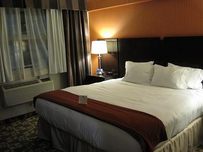 I tried to catch cabs, but again I was turned down for three times, and there were many people trying to grab a taxi so it took a while. I finally got a ride after 20 minutes of struggle, and arrived at the hotel at 10:50pm. I called my friend to let him know that I don't Checked in and went to the room at 11:00pm. The room had a pretty huge flat screen TV, but no interest watching it right now. I took of my suits, took a quick shower then went to bed before midnight.