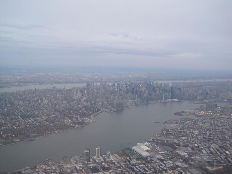 The line for the security was not so bad but there were only two lanes open, so it took a while for my turn. I passed the security at 5:25am, and walked toward the gate. The boarding to the plane started from 5:35am, so I'd better move on. The boarding started but the jet way was pretty cold. one good thing is that the plane had a good heating in. It departed at 6:00pm, and taxied only few minutes. Took off to south at 6:10pm, changed the heading to east as I watched the plane flew by Detroit downtown and Windsor across the river. The cloud covered the ground view, and I took a nap for a while. I then wake up, then heard the announcement of the plane getting ready for the landing. The plane approached from the west, passing the Liberty Island, Downtown New York, and made a left turn above the park and landed to west at 7:30am. I don't have any checked bags so I can go now.