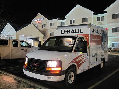 Driving down I-45 toward Houston Entering Beltway 8, I have to pay toll I arrived to the hotel at 4:30pm. Dropped off my belongings then went to FedEx office around 5:30pm for paperwork for tomorrow. I also stopped at a bank to withdraw some money to pay the transporter driver. I grabbed a dinner from Chili's nearby the hotel to cerebrate my safe arrival to Houston. I actually wanted a beer but no guarantee on driving okay in this condition... I took meal back to the hotel at 6:00pm, and helped myself. After checking the items in the travel bag, I realized that I don't have enough change of cloths so I dove into the moving truck's cargo area to grab some. I called home to let my dad know that I arrived safe. Went to bed around 10:30pm. I need to get ready for tomorrow.