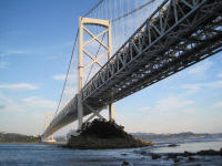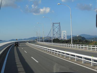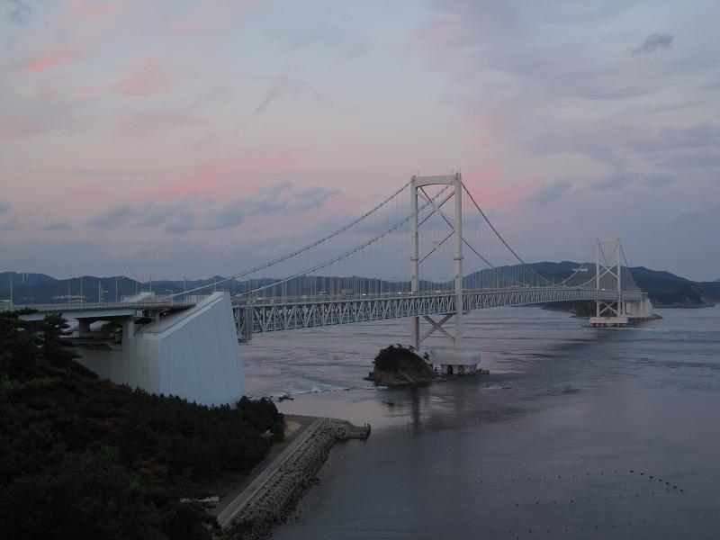I woke up at 5:30am as usual. I stretched my body and packed for the day. I had breakfast and took shower. Left home at 7:15am, walking up to the station nearby to catch a train to Maiko. The train, which was supposed to be leaving Nishi-Akashi at 7:26am, did not come until 7:30am. It was only a 5 minutes delay, but I might miss the bus to Naruto which is scheduled to arrive at the bus stop at 8:45am. I was worried all the time while I was in the train, and it arrived at Maiko station at 7:38am, so I ran up to the Akashi Kaikyo Ohashi bridge in a few minutes. I got there at 7:43am, just two minutes before the bus comes. I made it okay, phew...