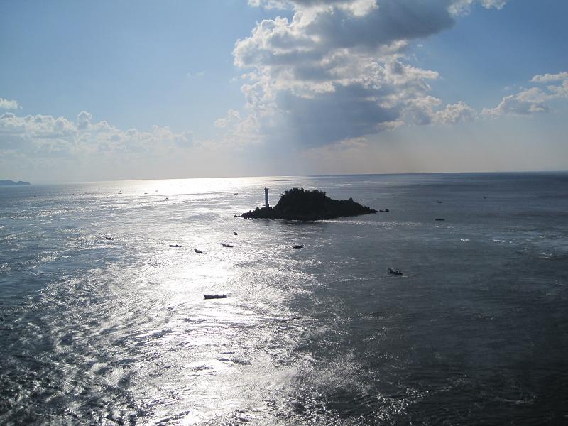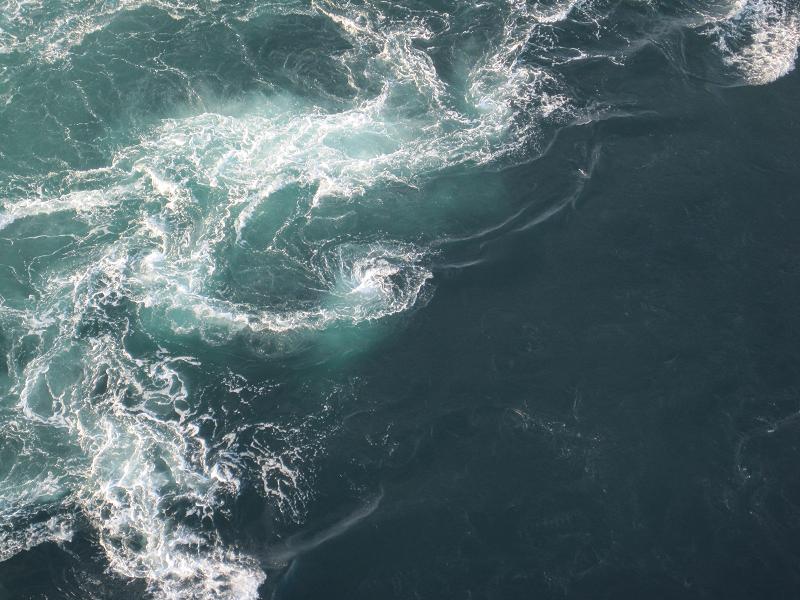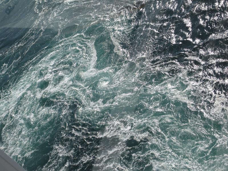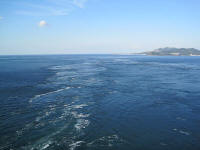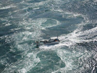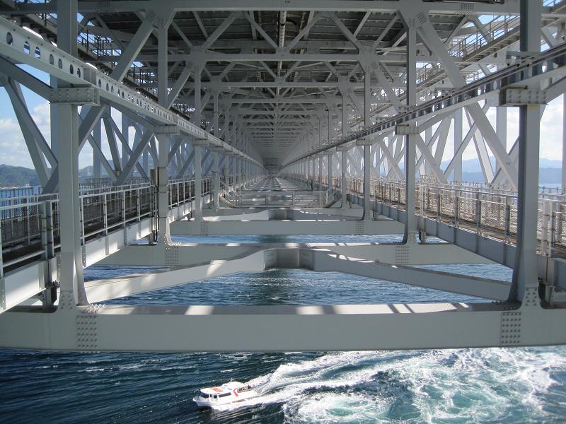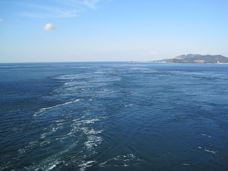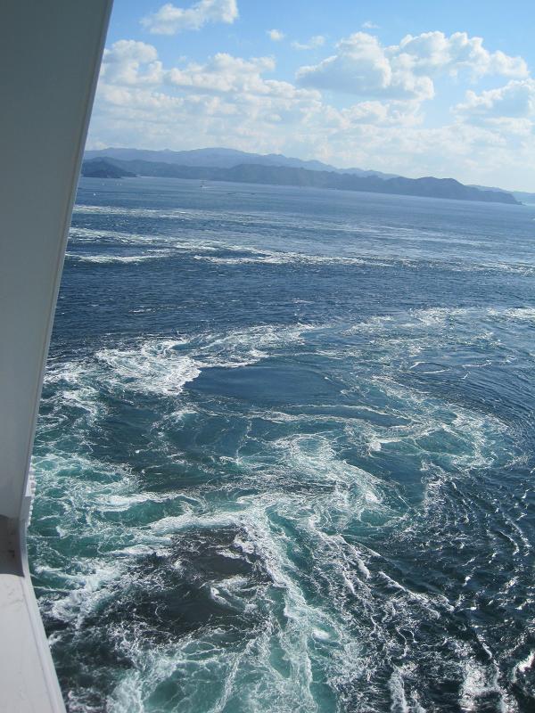 Because I carry no map, I had no idea where to go. So, the first thing I did was to look around. It was still early in the morning so the most of the stores have not opened yet. The view of the bridge from couple of different places are nice, hard to pick which one is the best. For today, the high tide was at 9:30am and low tide was around 3:00pm. There are about two ways to take close look at the whirlpools. One is to use a boat, and the other is to use a a place called Uzu no Michi (means the road for whirlpools). The later one cost me 500Yen, and I can use an observation deck 50m above the sea.