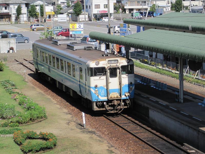 While I was in the Uzu no Michi, I picked up a flyer showing a list of famous noodle shops around the area. I decided to eat at a place called Itonami. I checked the timetable of the bus, there are two companies operating and each runs one every hour, and one just left. I have 30 minutes wait. So I walked the stairs back up and did some shopping. I had to buy postcards, and a small box with many pieces in it (so I can share with my coworkers). Soon the time is up. A bus left Naruto Koen at 10:36am, it drove around a lot before arriving at the JR Naruto terminal. I was told that it would take about half hour, and in 40 minutes. I guess maybe because today is not a big holiday. I walked to the restaurant I picked at the park, located just 5 minutes walk from Naruto station. Paid 600 Yen for a bowl of noodle. It was good, the soup was very thick. Walked back to station, checked on timetable of JR, and found that there are only 10 trains per day. I waited for a while, and saw one coming which had only one car and looking aged. I guess it was good enough, because the whole town is kinda calm, small and peaceful.