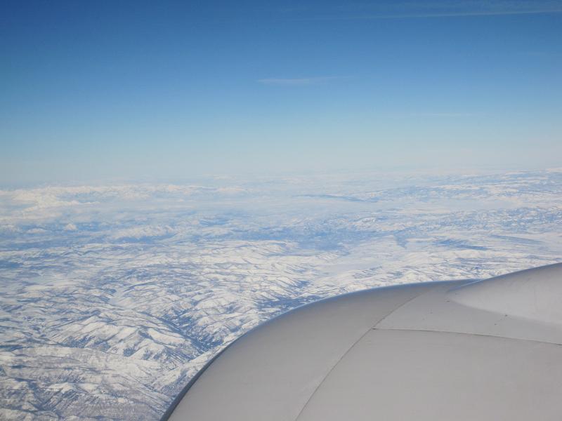 Changed the heading to north ward at noon, then the lunch was served. I tried cod fish this time, but I guess I should have chosen the beef instead. When I start seeing the circular farmlands on the ground, I could see snow on the ground at far. Guessing we are flying at northwestern Texas, looking up Oklahoma. While eating lunch and afterwards, I was watching a few programs, including a one showing how the coins are made, cutting process of marble stones, and another one showing a couple of teams modifying minivans to so called sports cars. The last one was a movie, Hurt Locker, I wanted to watch it because it had a lot of good reviews. It was good but, I guess there are some rooms for improvement, like the movie could contain more details of surroundings. Finished watching around 4:00pm then I closed my eyes to take a rest until I get to Japan. The seat was not that comfortable but I have no choice. Kinda sad part of being in a economy class. Snacks served at 6:30pm, which was a chicken enchilada burrito and a cup of ice cream. Again I went to sleep. The air gets turbulent on few occasions, but otherwise it was calm all the way. I heard the tone of the engine changes, looked up my clock says 10:00pm and guessed that we just started to slow down, approaching toward Narita. I looked outside the window but no land insight yet. The cabin lights turned on at 11:00pm, about 1.5 hours more to go. The breakfast was served at 11:20pm, I chose eggs. The plane few south of Choji city and feet dried at 12:25am. The plane made the final approach and landed safe at 12:34am, which is 3:34pm on 1/21 local time. Had to taxi for a while so the plane arrived at the gate at 3:50pm.