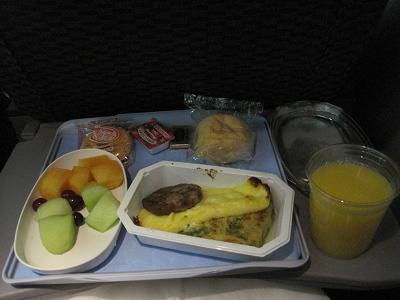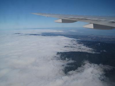 The sun was coming down as it was preparing to depart, and the plane was pushed back at 6:30pm then took off to south at 6:45pm, flying along the main land then turned to east. I could see the belt of light from Nagoya to Tokyo. Soon the plane headed to the pacific ocean. The entertainment system was not that good so I took nap after the dinner. The flight to San Francisco was very much calm. I woke up when the plane is about two hours off the shore, then the breakfast was served and soon the plane reduced the engine power for descending.