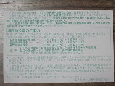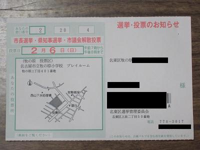 After finish washing dishes, I walked out from the house at 8:10am and toward Meito Ward office for absentee vote. For this time, formally scheduled for February 6th, there are three kinds going on, Mayor for Nagoya city, Governor for Aichi prefecture, and city hall recall vote. I can cast for all three from today. I thought it would be just 30 minutes of walk, but took actually 10 minutes more. Because it was bitter cold, my toes started to get numb. Finally arrived at the building, had to go up to the third floor, and cast all three. I hope my vote be counted, and they will hear my voice. Walking out from the office, took the same path back home. I got back at 9:40am. After that, I packed my bag, checked the timetable to go to Akashi, then read newspapers for the day. It was quite interesting to read about Boringho, a generation of Chinese people who were born in the 80s. Had curry for lunch with my dad, did the dishes.