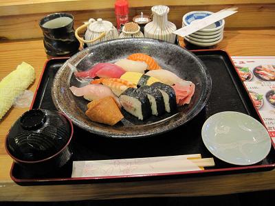 At Sannomiya, the other coworker wanted to buy play dolls for his daughters, so we went to a department store called Sogo. I have to say, which was pretty fun to watch a big American guy looking for small toy dolls (for girl). During the search, they found Tomica toy cars which have some construction machines in their selection, so they started buy them but some are missing a few. Not satisfied, so we decided to head to Akashi to try at ToyR'us for more and for our lunch. We left there just after noon via Special Rapid, getting off at Akashi for more toys. We are now okay. Walking out from the department store, we had Sushi plate for lunch. I realized although my coworkers stayed almost a week, they have never get to eat this. I am glad they enjoyed it.