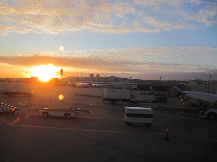 Get dropped off at the terminal and proceeded to the check in counter. I already checked in online so I thought I just need to drop off bags and receive the tickets. However, the automated machine denied my process so I had to first talk with a Continental Airlines agent, then she sent me to the United Airways at next counter. I were not allowing me to do. I had ask another attendant and finally got my ticket at 6:45am and walked toward the security. Since I already in the elite status so I just need to lined up to a shorter line. I waited for 10 minutes until I passed the screening. Hurrying toward the gate at 6:55am. The boarding will soon start.