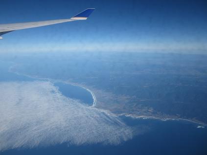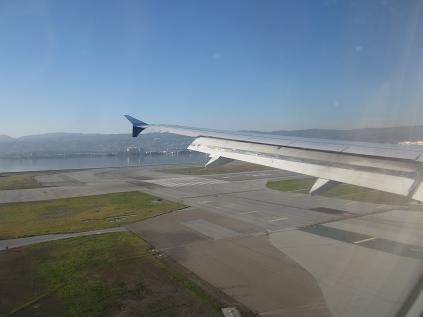 Walked up to the gate and asked the representative if I had to do a passport check, and they told me that's not required... Okay then. Waited at the lobby where many people just waiting for the boarding to begin. There were not enough seats around so I saw many of them standing, and I was one of them. The boarding started and I could take seat early because of my elite status, so I just walked into the cabin and took my seat at 11:00am. Waited for a while to get all seats filled. I picked the one at very end and only had one person next to me so it was easy to get out. The plane departed nearly on time at 11:30am, and taxied for a while. It took off to the northwest at 11:45am and flew by South San Francisco. I could see the downtown and then the golden gate bridge to the right. Flow along the coast line as it gained altitude.