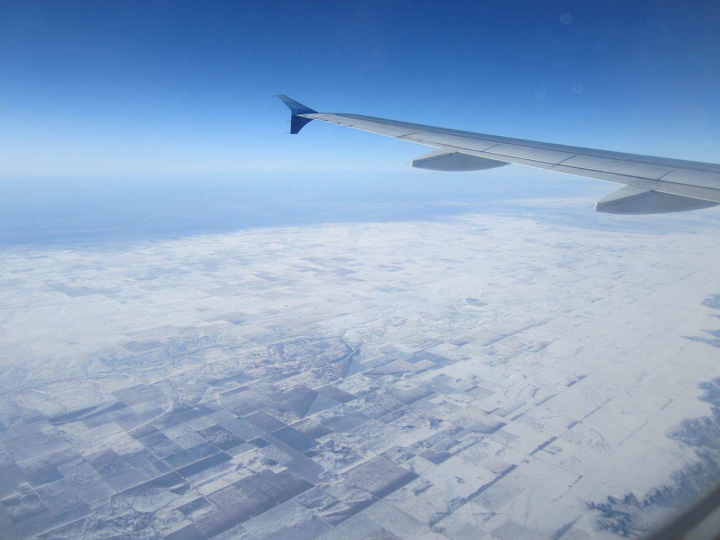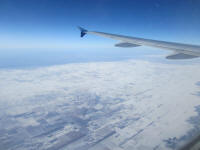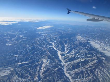 Enough of the watching around under chilly condition, I walked back in to the building and proceeded to the security. Bought lunch and waited for the boarding to start. The boarding started around 2:10pm and I took seat at 8A at 2:20pm, the plane departed from the gate on time at 2:25pm. After taxing to the south end of the airport and took off to the north at 2:35pm. Maybe because the head wind was very strong, the rolling distance was very short and left ground by mid part of the runway. The plane circled around the airport then headed to east. The whole cruise was not so bad.