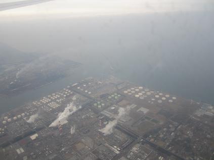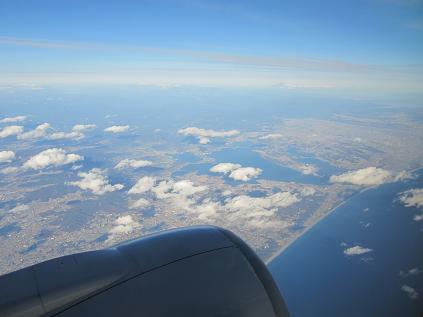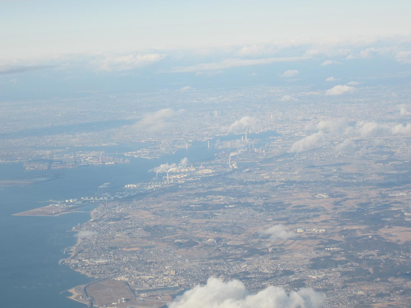 The plane started to descent at 2:35pm, the weather was cloudy so I cannot see anything. The plane made it to shore at port of Kashima at 2:50pm, and flew along Tone river, the plane made final left turn toward the Narita airport, and landed at 3:05pm under overcast weather.