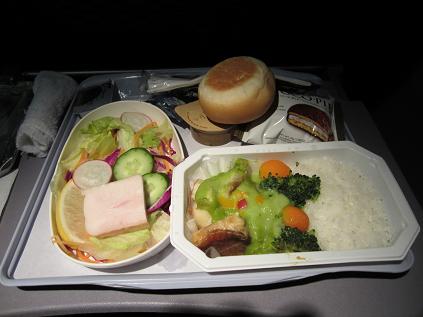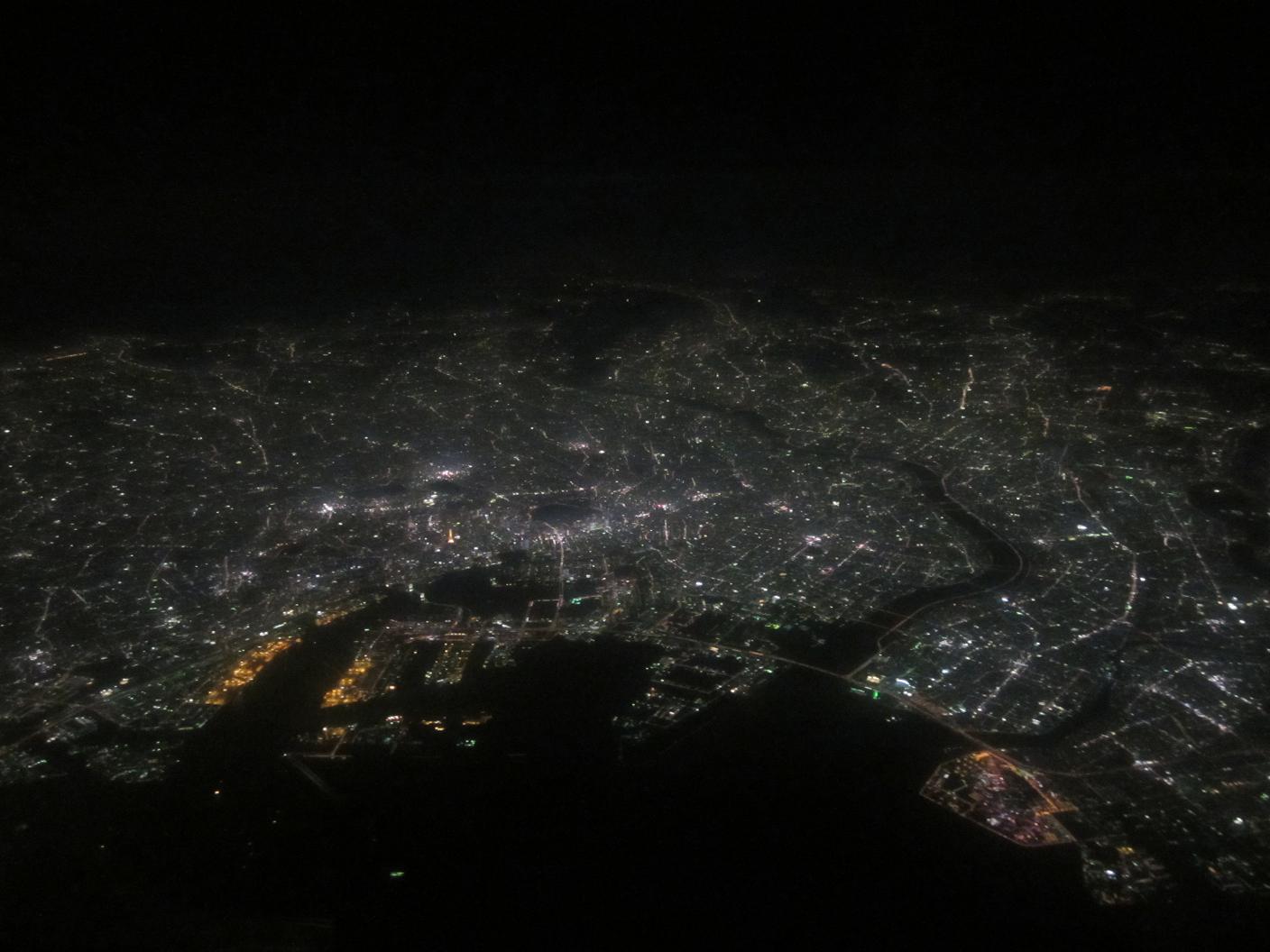 The plane took off at 6:40pm, flew over Tokyo at 6:55pm. Then I felt so tired and fell sleep.