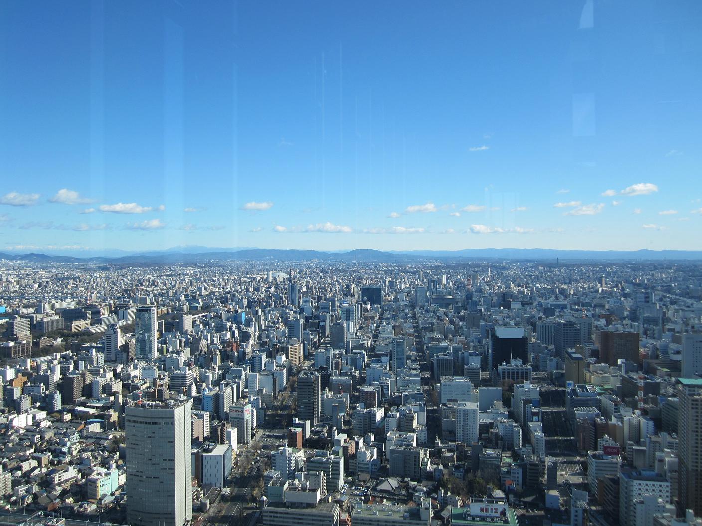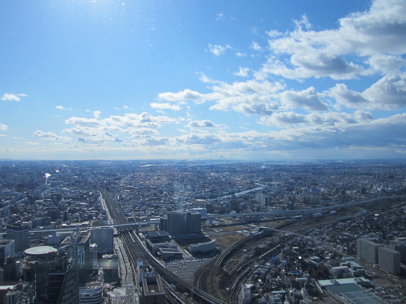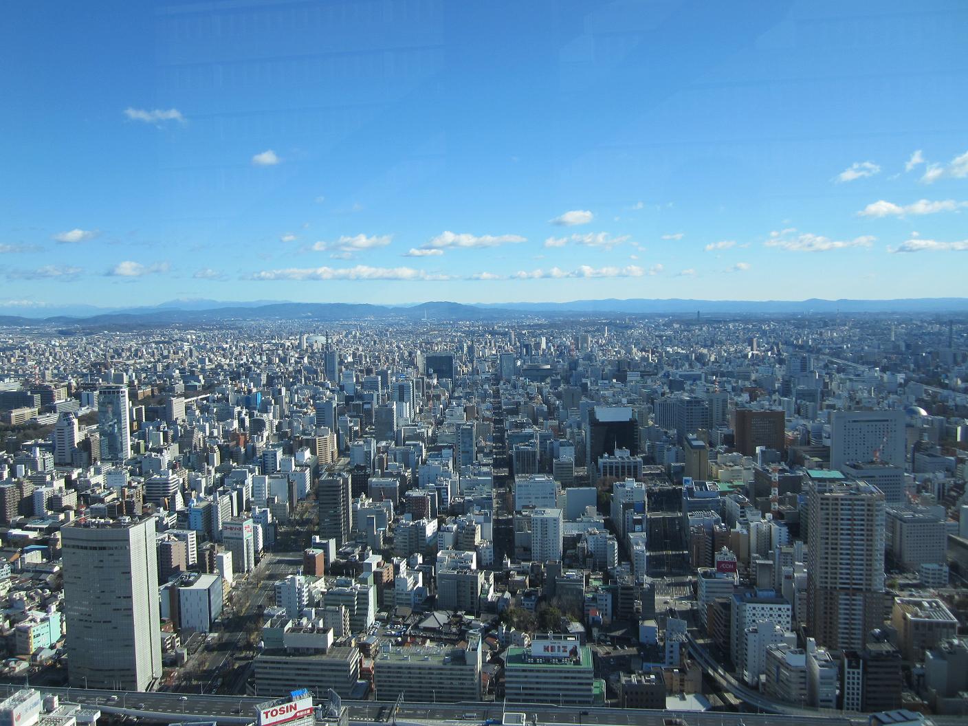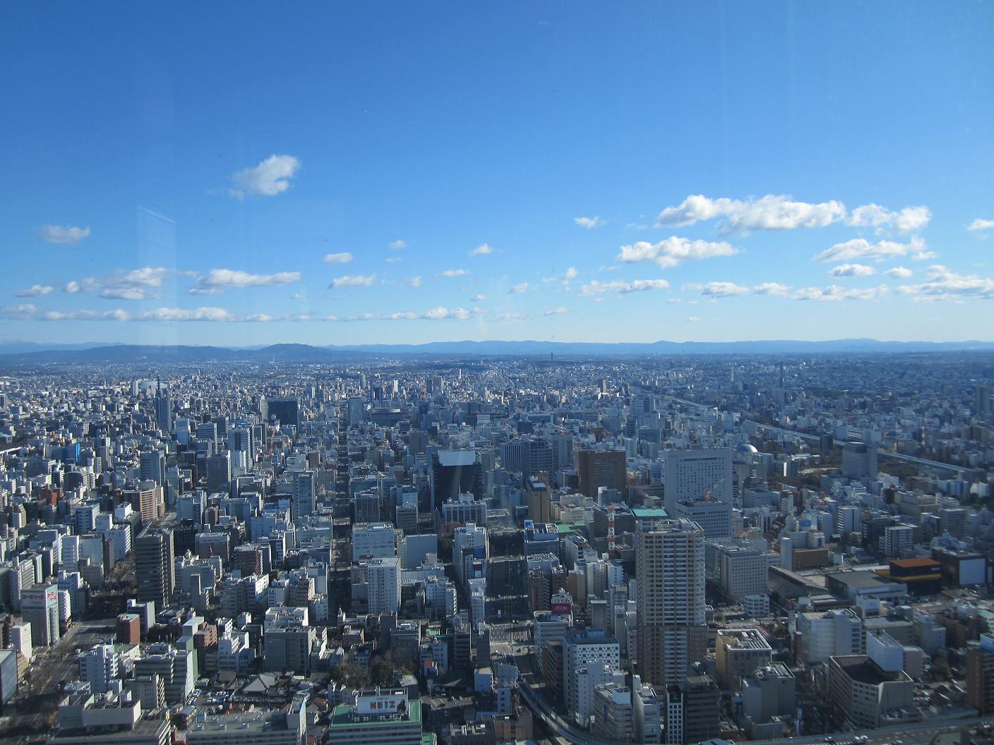 I did not get to sleep over the night. I got out from the bed around 6:00am with help of an alarm clock on my Japanese cell phone. My dad came and asked if I was going to have breakfast with him, but I already promised with my brother's family so I only joined for a chat with my dad. Had breakfast with my brother's family around 8:00am. At the new house, I have a better view than the last one. Today seems to be a nice day so I thought maybe I can see far way and decided to go to a high rise at Nagoya station to check out the view of Nagoya. My brother's family decided to join me so we all packed in hurry. We left home at 10:00am to catch a bus to Nagoya. Walking out from the terminal but it was very windy. Walked across the main road to reach the Midland Square's entrance at 10:50am. The observation deck was open from 11:00pm so we came in a good timing.