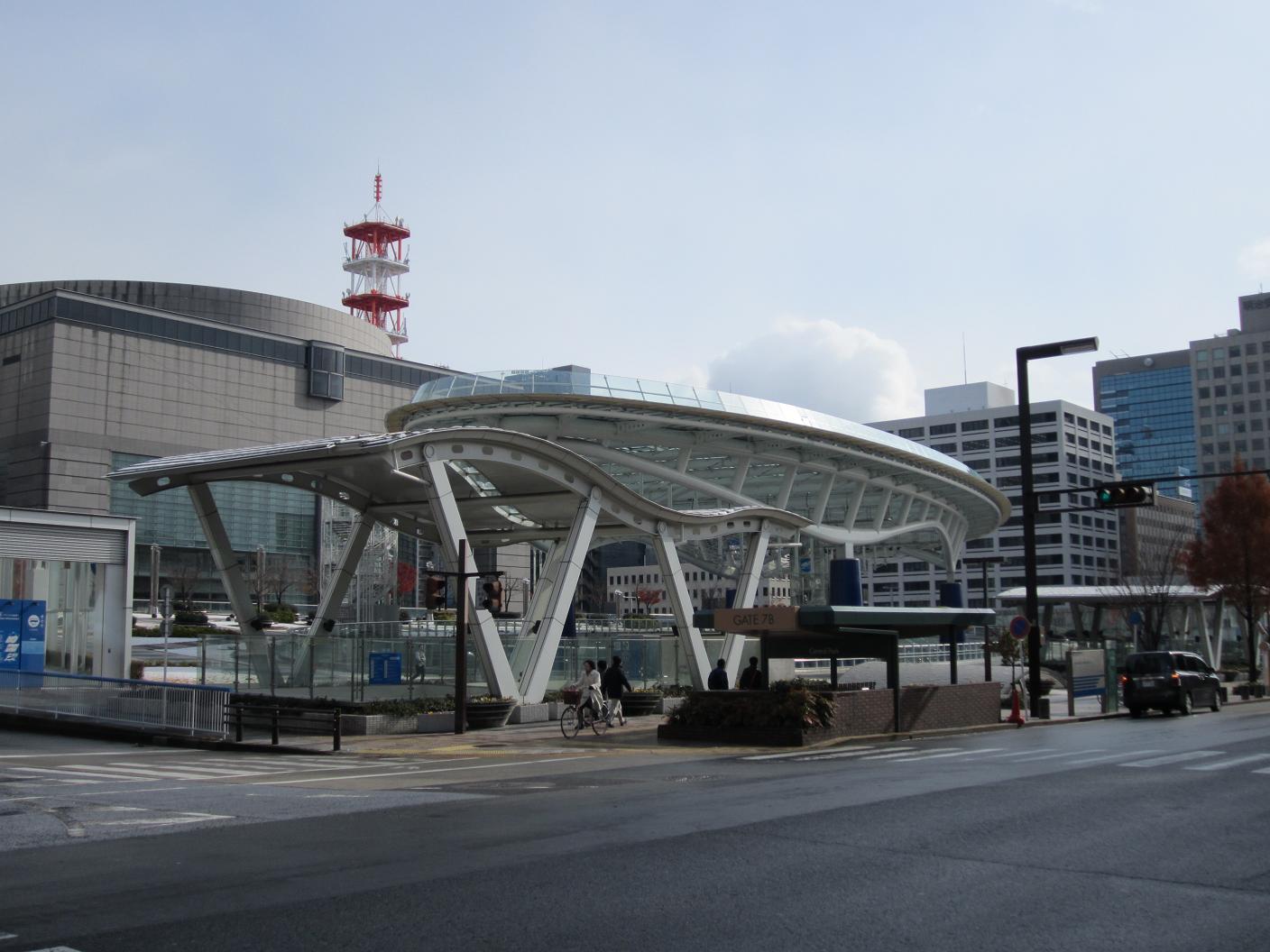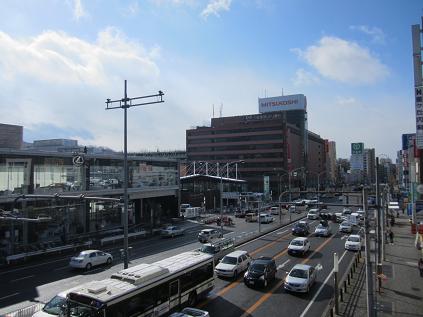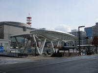 The sky was clear so it must be a good day to look outside from the plane bound for Narita... While I was thinking things like that, I arrived at a bus stop. The posted sign telling people about cancellation of bus services which I saw yesterday was gone. The bus came on time and headed to Nagoya station with no stop. I get to see downtown Sakae, the city Science Museum, and finally the tall buildings at Nagoya station. Arrived at Nagoya bus center, took an elevator down to the first floor.