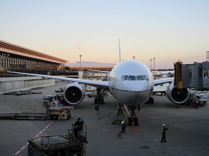 Bought snacks and Japanese Sake at Duty Free store around 4:00pm. After arriving at the gate, I found out that the flight is delayed. The initial boarding time was at 4:20pm but now it is 4:50pm. I did not see any plane until 4:30pm when a Boeing 777 came to the gate. I got called by the counter staff and get my ticket issued but no upgrade... While I wait, called my dad and my brother as the sky is getting darker. The boarding time again moved to 5:20pm. I found a coworker who is on the same flight, so I used his privilege to get in the cabin early at 5:25pm. I took my seat at 17L and looked outside which was very much under night. All the passengers get on board and the doors are closed. Time to go. (Done)