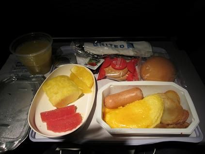 Snacks served in the middle of the night, I am not sure if I like them because they are so dry. 11:24am flying southeast of Kamchatka Peninsula. The plane flew by east of Hokkaido at 1:15pm then the cabin lights became on at 1:35pm. We have about 2.5 hours more to go. The last meal was served at 2:00pm and it was noodle and a bag of potato chips. I had the same chips for the snack... United, you disappointed me.