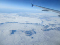 | Flying over a plain | with some snow | snow covered | a lot of snow in the mountains |