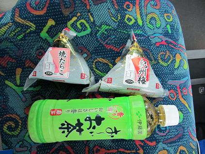 My lunch, two rice balls and a bottle of tea, 410 Yen.